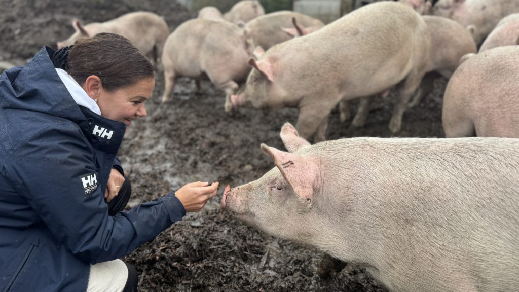 Fra motoropplevelsene fortsatte turen med fantastisk lunsj på Nyyyt på Røysland Gård. Her fikk kundene også oppleve traktor-transport på tilhenger til grise-åkeren og nærkontakt både med grisene og kyrene på beitet for å se på god dyrevelferd.