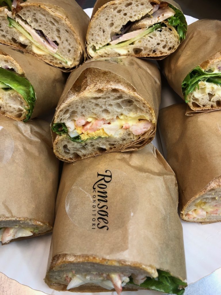 Romsøes Conditori Romsøegården ligger veldig sentralt i Stavanger sentrum og er et utsalg som selger nylagde sandwich, kaker, bakervarer, drikke og så har vi utvidet fokus på møtelunsj.